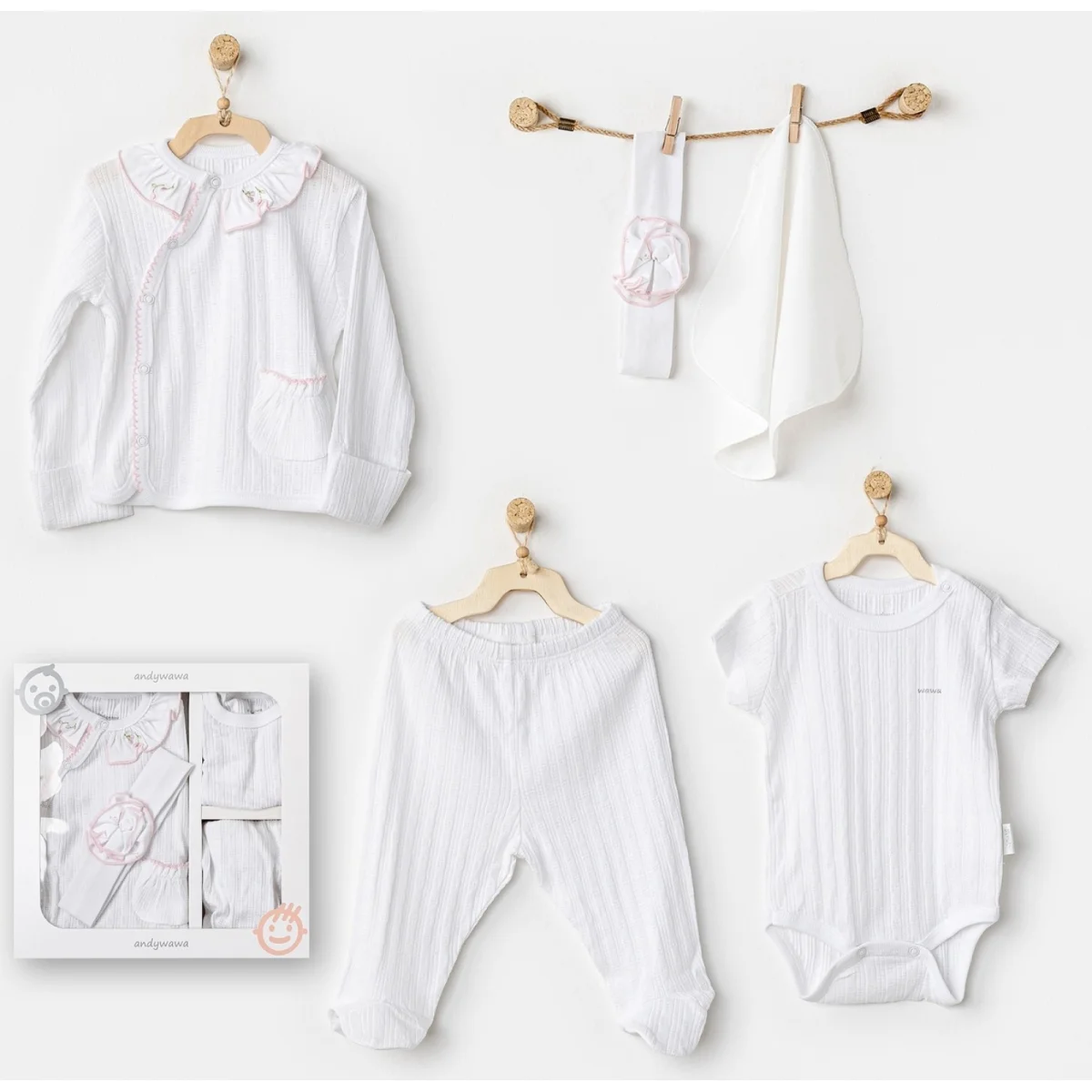 Andywawa Newborn Have A Nice Day Hastane Çıkışı, 5 Parça, Beyaz