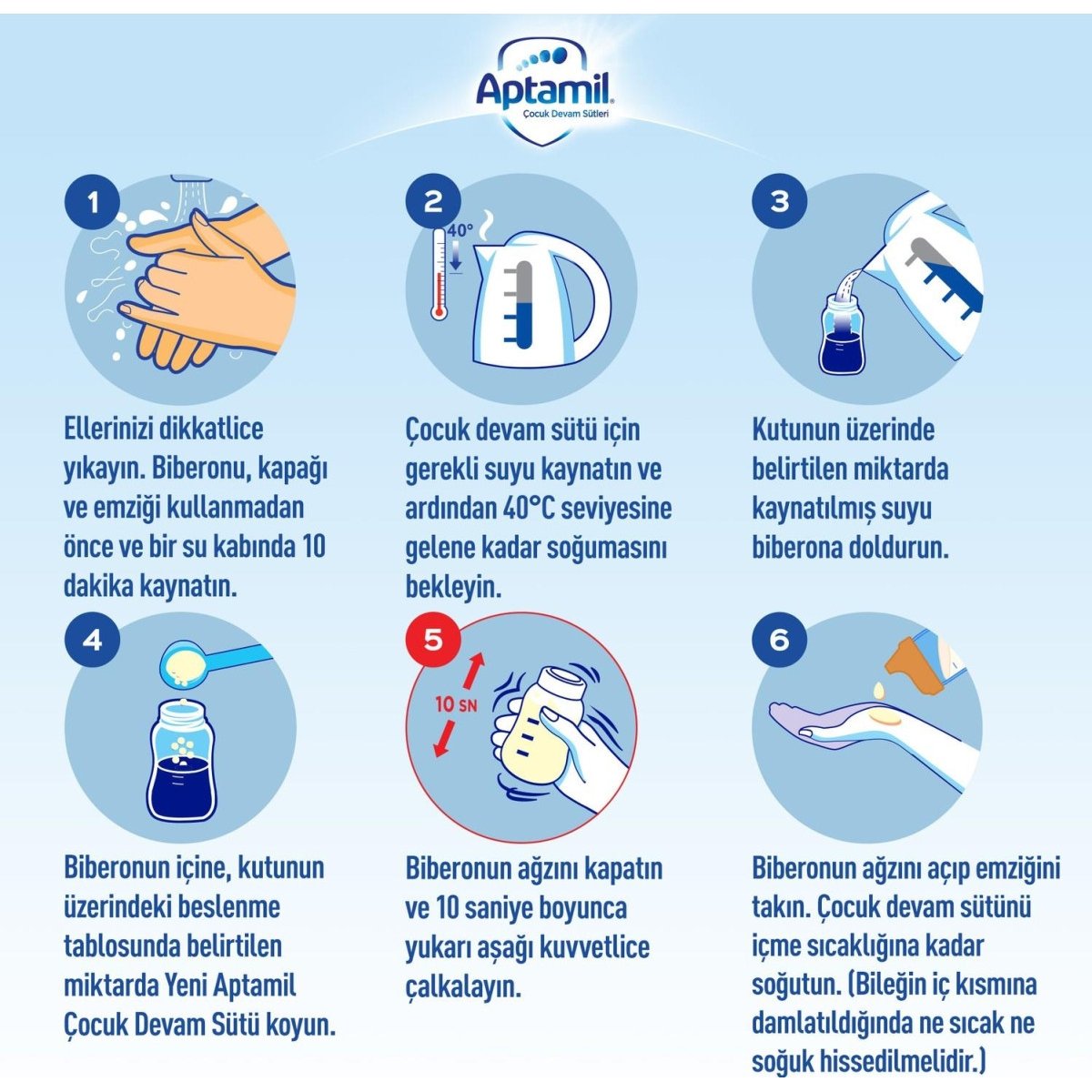 ÖNEMLI UYARI: Anne sütü bebekler için en iyisidir ve emzirme devam edebildiği kadar etmelidir. SMA® İYİ GECELER 1 sadece doğumdan itibaren anne sütüyle beslenemeyen 0-6 aylık sağlıklı bebeklerin beslenmesinde bağımsız sağlık hizmeti çalışanlarının önerisiyle kullanılmalıdır.Standart Beslenme TablosuÖNEMLI UYARI: SMA® İYİ GECELER 1’i bebeginizin beslenmesinden hemen önce ve tek seferde sadece bir biberonhazırlayınız. Sadece ürünün içinde bulunan ölçeği kullanınız. Hazırladıktan hemen sonra bebeği...