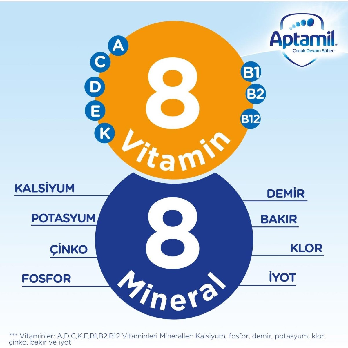 9. aydan itibaren kullanılan devam sütüdür. Anne sütüne takviye olarak veya ek gıdalar ile karma beslenmede kullanılır.Aptamil 3, Aptamil Prebiyotik Lif Karışımı ve nükleotid ilaveli devam sütüdür.Aptamil Prebiyotik Lif Karışımı:Aptamil 3 devam sütü içeriğindeki prebiyotik bileşenler ile bebeğinizin bağışıklık sistemini desteklemeye yardımcı olur.Sadece Aptamil’de bulunan Aptamil Prebiyotik Lif Karışımı, bilimsel olarak klinik araştırmalardan geçmiş ve onaylanmıştır....