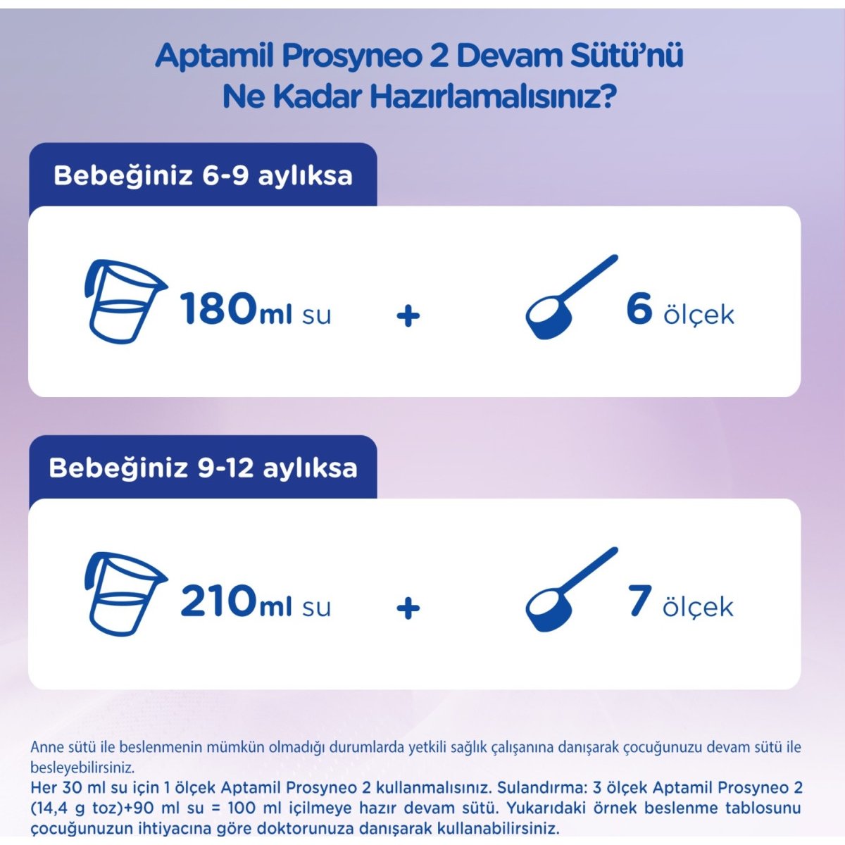 Anne sütü, bebekler için en iyi ve en doğal besindir.Zamanında doğan tüm sağlıklı bebeklerin besin ihtiyacını ilk 6 ay tek başına karşılar.2 yaşına kadar bebeğinizin bağışıklığını güçlendiren en üstün besin anne sütüdür.Aptamil Prosyneo 2 Devam Sütü doktorunuza danışarak anne sütünün hiç verilemediği veya yetersiz olduğu durumlarda kullanılır.Aptamil Prosyneo 2 Devam Sütü’nün bilimsel araştırmalarla geliştirilmiş içeriği, bebeğinizin beslenme ihtiyaçlarını karşılamaya destek olmak amacıyla geliş...