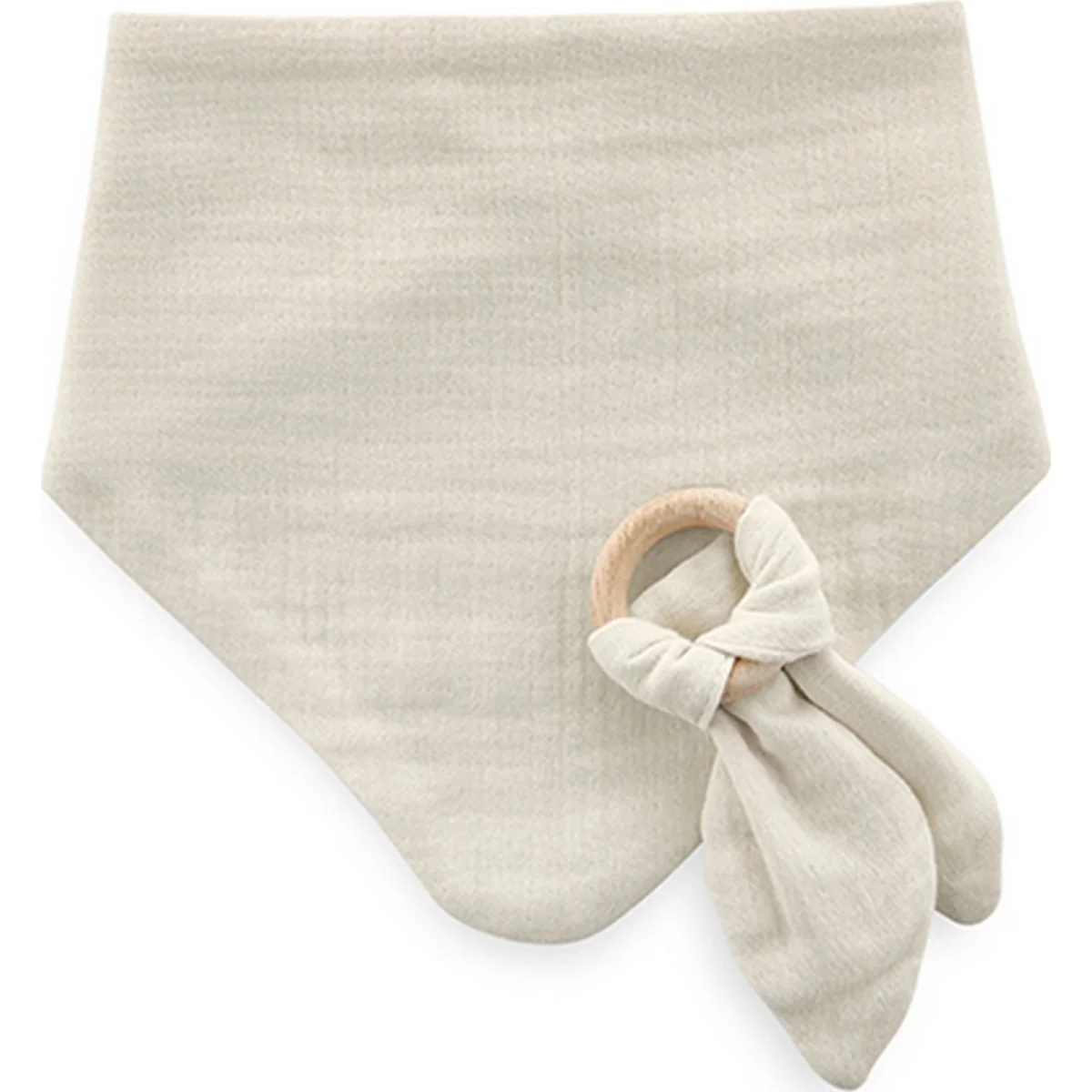 BabyJem Ahşap Diş Kaşıyıcılı Bürümcük Müslin Önlük, Ekru