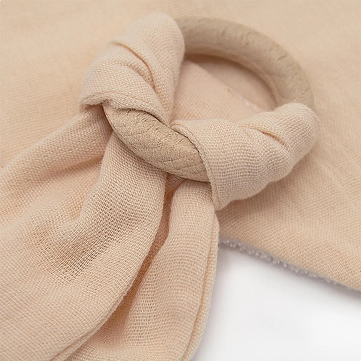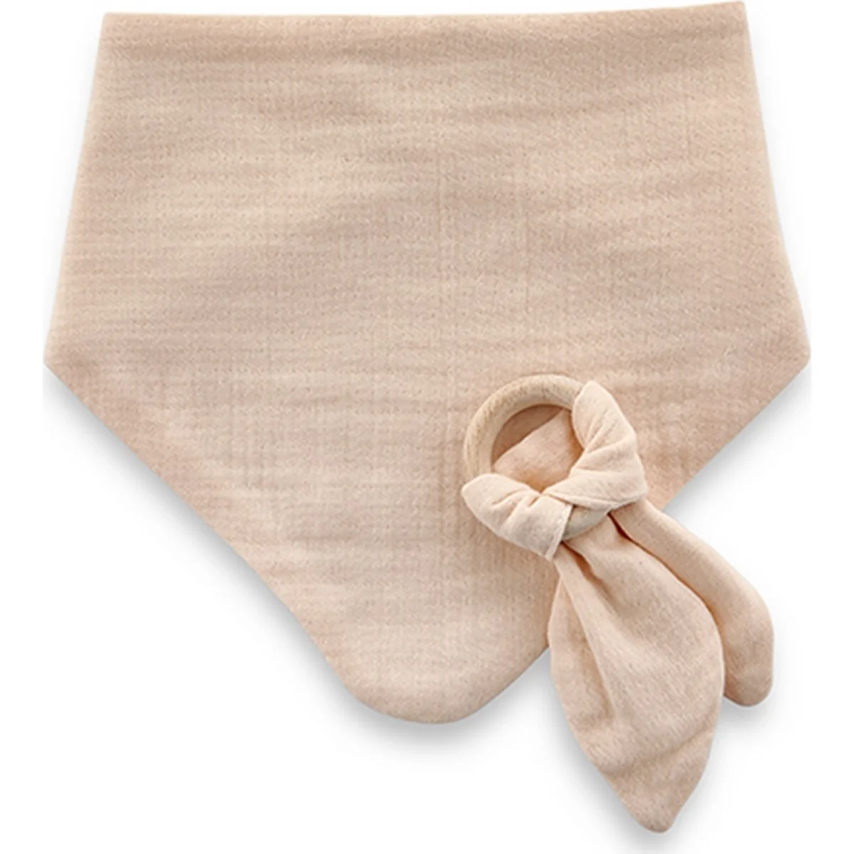 BabyJem Ahşap Diş Kaşıyıcılı Bürümcük Müslin Önlük, Somon