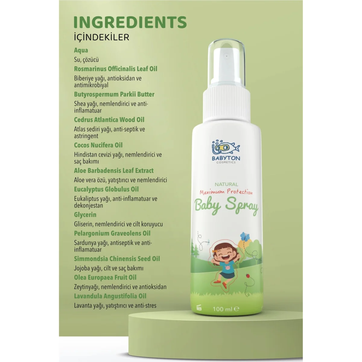 Babyton Organik ve Doğal İçerikli Vücut Koruyucu Sprey