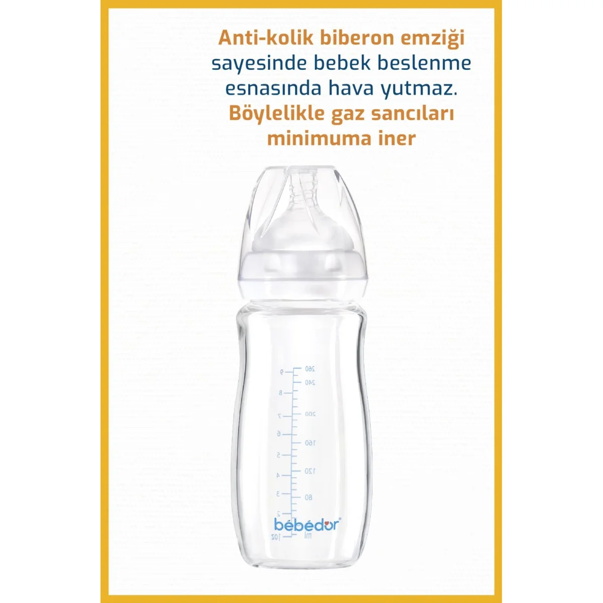 Bebedor Geniş Ağızlı Isıya Dayanıklı Cam Biberon, 260 ml