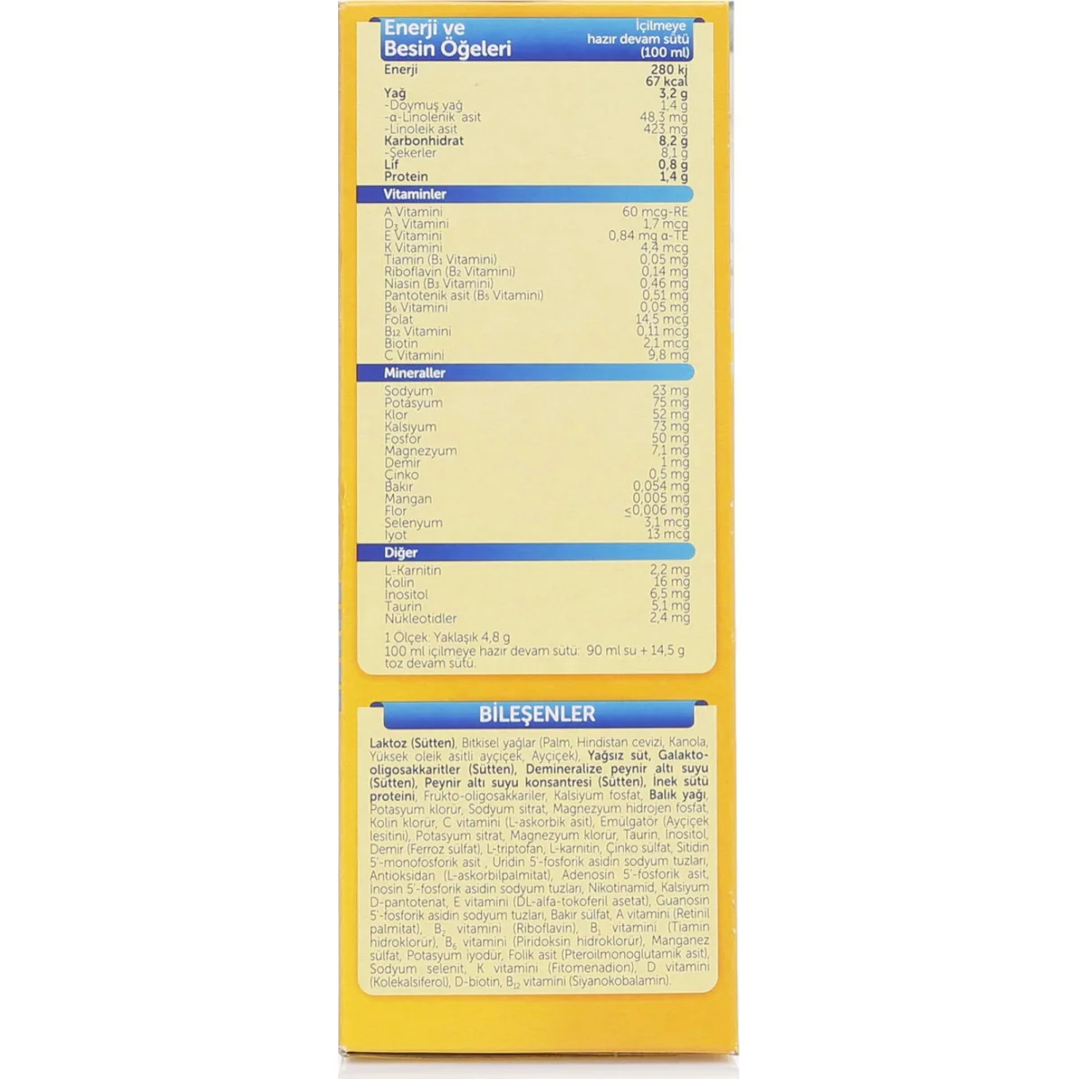 Tamamen organik süt kullanılarak üretilmiştir. Gluten içermez. İlave şeker içermez. Beyin.Göz ve sinir sistemi gelişiminde çok önemli olan uzun zincirli yağ asitleri ( LCPUFA ) ilave edilmiştir. Faydalı Prebiyotik lifleri ve Probiyotik mikroorganizmaları içerir bu mikroorganizmalar bağışıklık sistemini desteklemeye ve sindirim sistemini düzenlemeye yardımcıdır.Saklama koşulları ve son tüketim tarihi, ürün güvenliği ve kalite sürekliliği açısından önceliklidir.Açıldıktan sonra kullanım süresi ve muhafaza önerileri ürünün tazeliğini korumaya yardımcı olur.Dengeli beslenme planında benzer ürün gruplarıyla dönüşümlü kullanım yaklaşımı önerilir.Beslenme planında ürünün tüketim zamanı ve porsiyon dengesinin belirlenmesi daha düzenli bir rutin oluşturur.Açılmış....