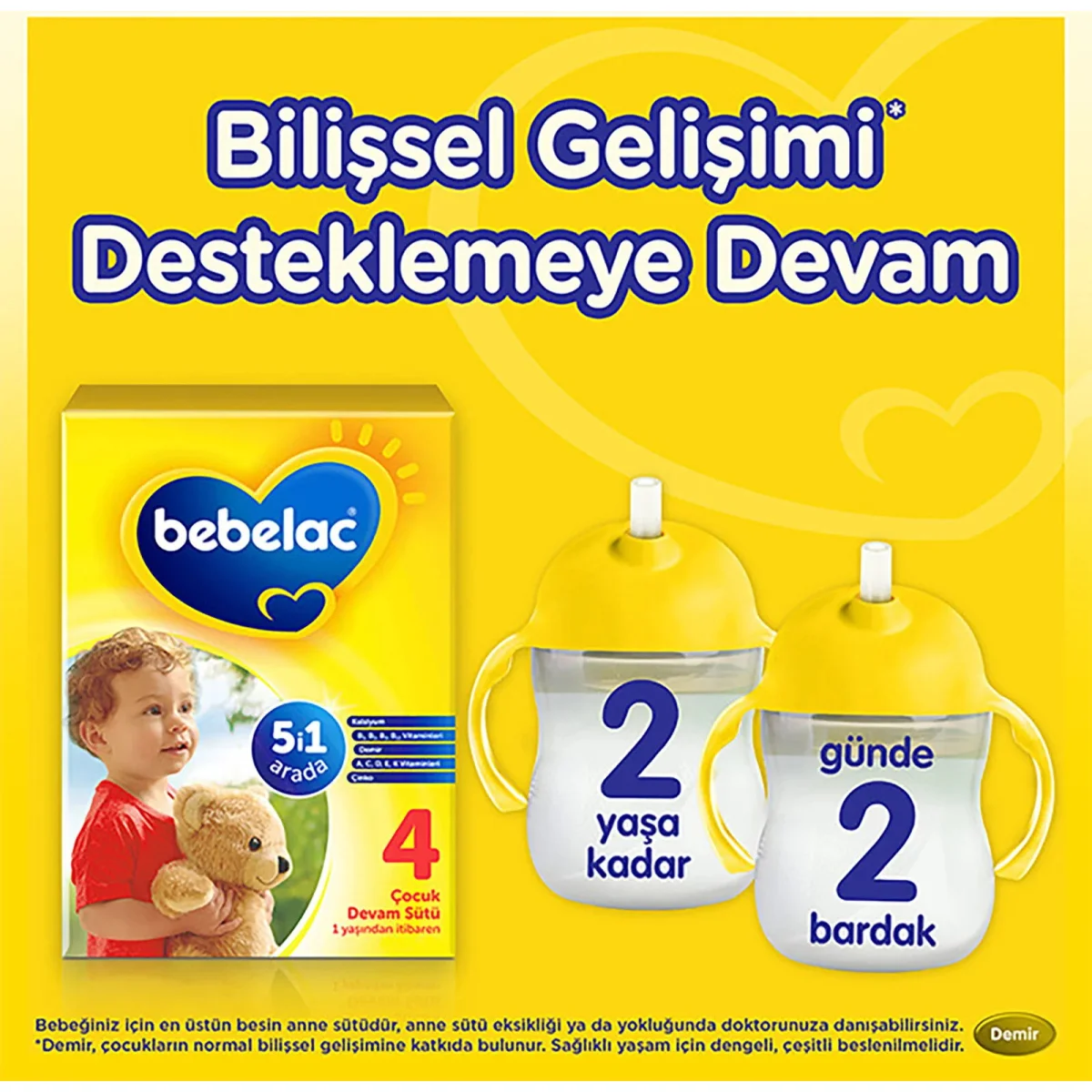 Bebelac Çocuk Devam Sütleri demir içeriği ile bebeğinizin bilişsel gelişimini destekler.Bebeklerin ayına uygun içeriğiyle yüksek kalite standartlarında üretilmiştir.Bebelac, karbonhidrat olarak sadece laktoz içerir.Laktoz anne sütünde de bulunur.Demir, Çinko, Kalsiyum, A, B1, B2, B5, B12, C, D, E, K Vitaminleri içerir.Demir bebeklerin normal bilişsel gelişimine katkıda bulunur.Sağlıklı yaşam için dengeli ve çeşitli beslenme önemlidir.5’i 1 arada içerikli Bebelac Devam Sütleri C, D, B2, B5, K ve Biotin vitaminlerinden zengindir.Bebelac 4 Çocuk Devam Sütü, anne sütü ile beslemenin mümkün olmadığı durumlarda doktor tavsiyesiyle 1 yaşından itibaren kullanılabilir.