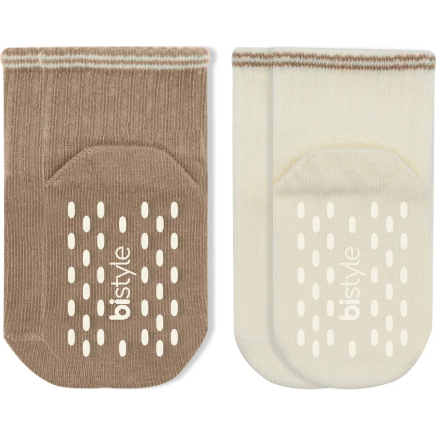Bistyle Çemberli Basic Penye Kaymaz Soket Çorap, 2'li, Kahve
