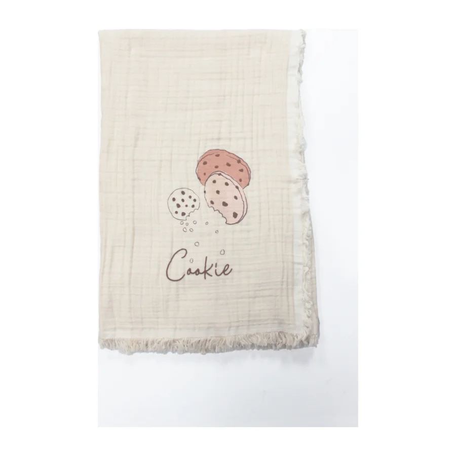 Bistyle Cookies Make Happy Müslin Battaniye, 100x200 cm, Ekru