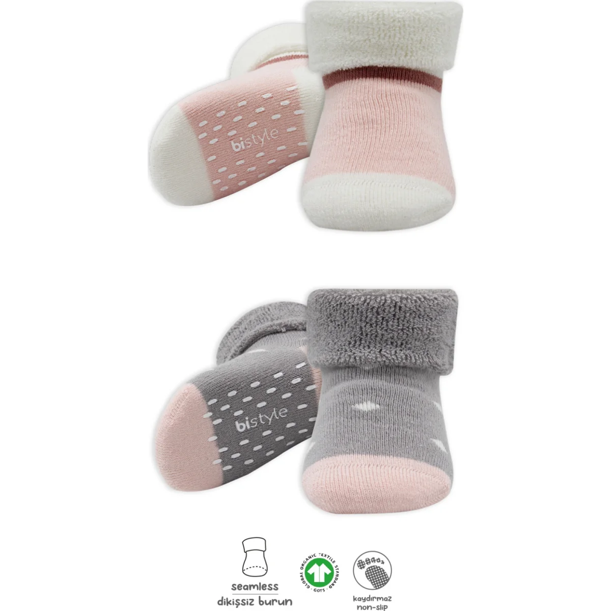 Bistil Bistyle Organik Kız Erkek Bebek Dikişsiz Basic Kaymaz Altı Taban Kaymaz Kaydırmaz Sneakers Patik Çorap Renkli Kokulu Pamuklu Yumuşak Antialerjik. Paket İçeriği:2 çift Kaymaz Taban sneakers Çorap. Yumuşak.Nem emici ve kokulu Bistil çoraplarımız minik bebekleriniz için özenle üretilmiştir. Bebeğinizin ayak parmaklarını her türlü mevsimde.Yumuşacık ve konforlu tasarıma sahiptir. Birinci sınıf ince pamuklu malzeme.Rahatlık ve nefes alma özelliği ile bebeğinize daha konforlu bir deneyim kazandırır. Bebeğinizin sağlığını ve mutluluğunu ilke edinen Bistil ürünleri.Bebeğinizin hassas cildini tahriş eden veya alerjen oluşturacak herhangi bir kimyasal özellik barındırmamaktadır. Kumaş Türü:% 80 Organik Pamuk / Organic Cotton - % 17 Polyamid / Rcyled....