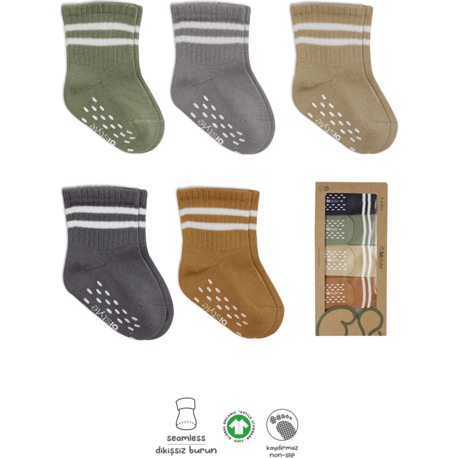 Bistyle Kaymaz Çember Soket Çorap, 5'li, Penye, Bej