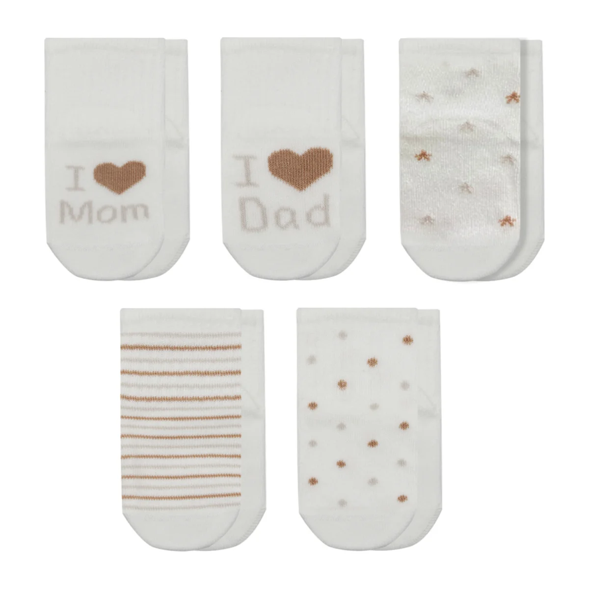 Bistyle Mom Dad Kutulu Penye Soket Çorap, 5'li, Ekru, Kahve