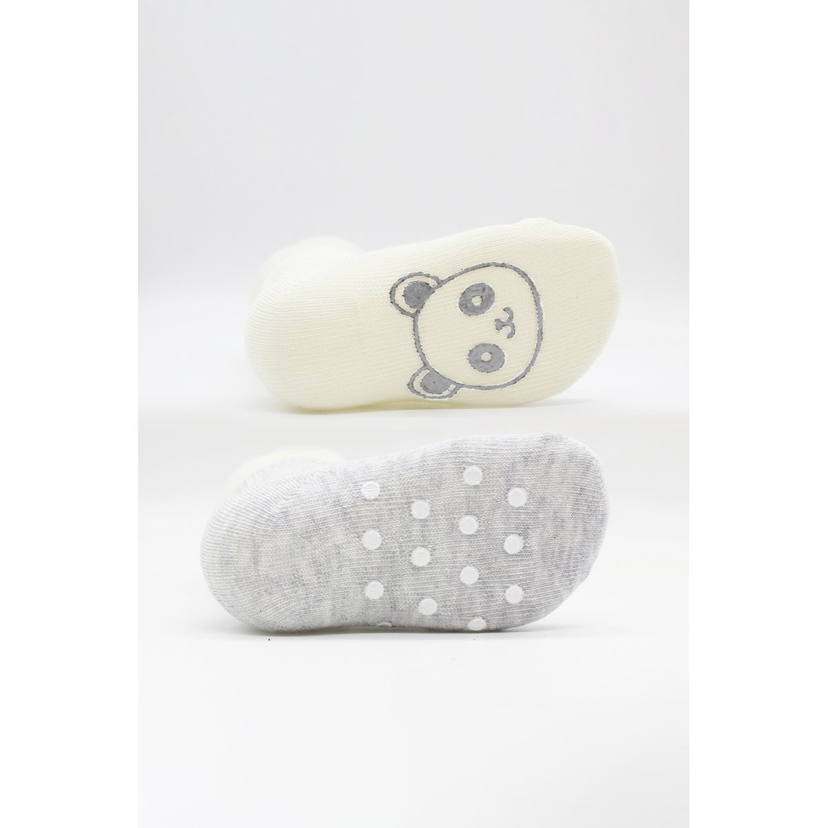 Bistyle Organik Penye Figürlü Kaymaz Soket Çorap, Gri, Ekru, 2'li