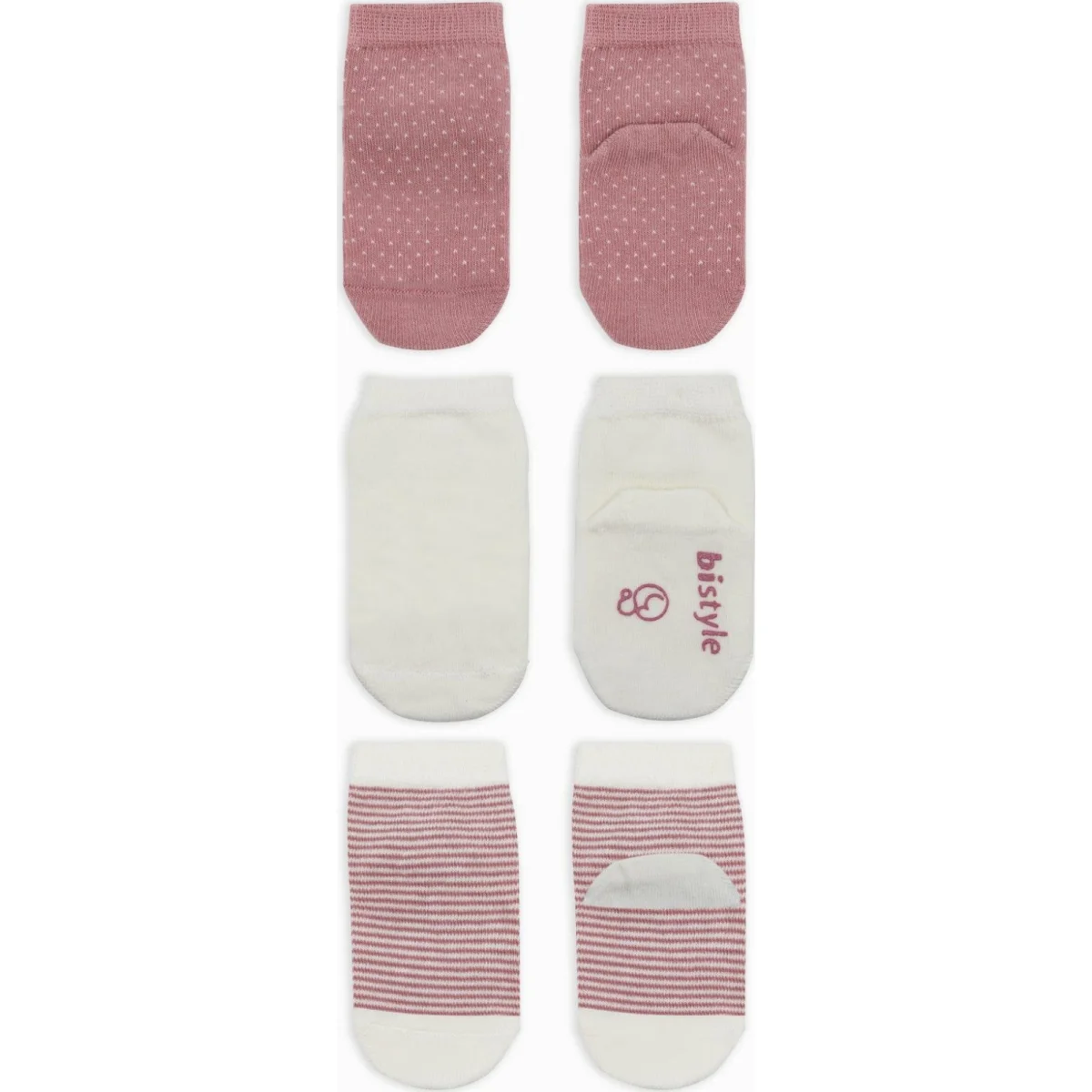 Bistyle Puanlı Kaymaz Penye Soket Çorap, 3'lü, Pudra