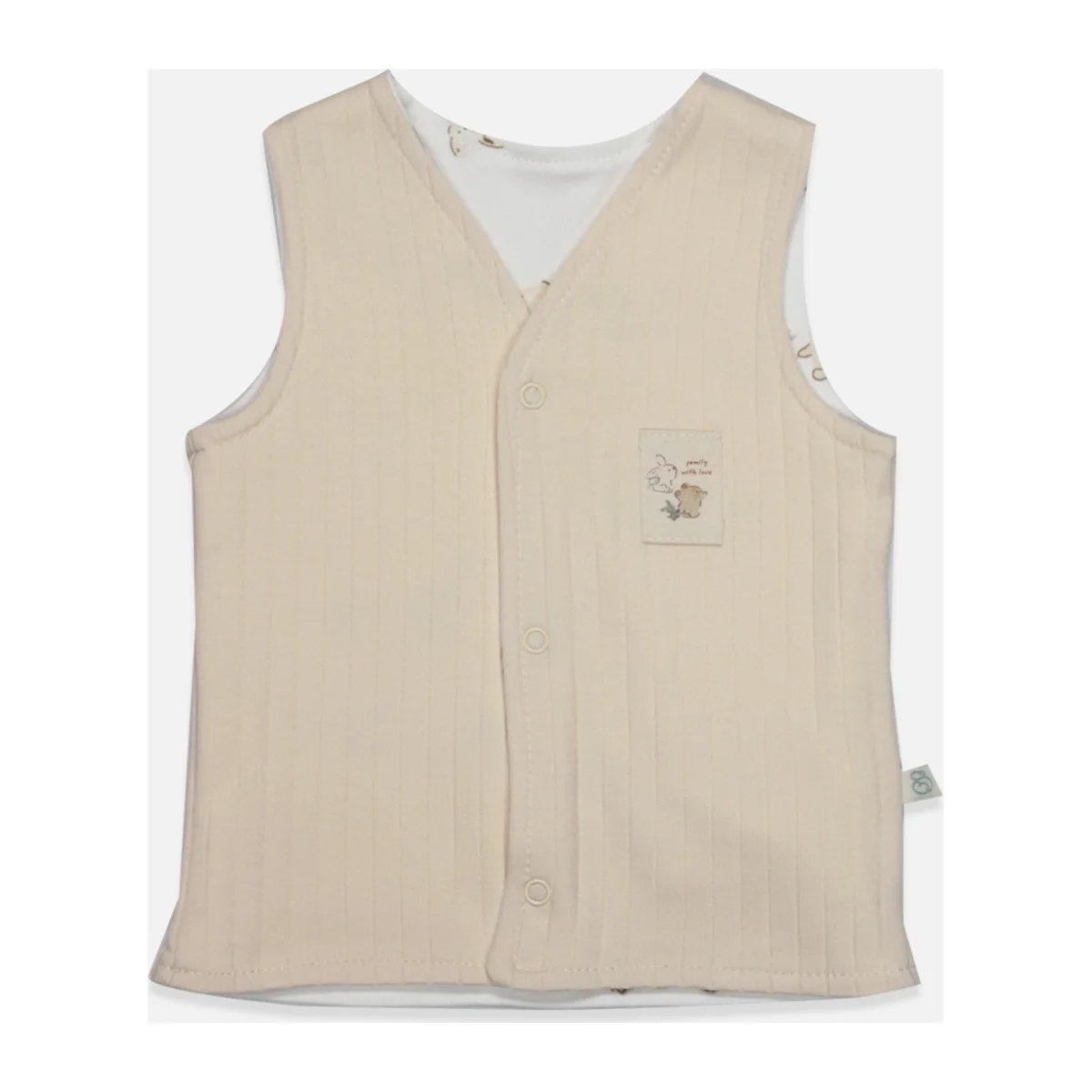 Bistyle Yelek Çift Taraflı With You Family 18113 ÖzellikleriÜrünlerimizde kullanılan tüm çıtçıt ve fermuar detayları nikel içermez ve antialerjiktir.Kumaş boyalarımız uluslararası güvenlik standartlarına uygun olup kanserojen madde içermez.
