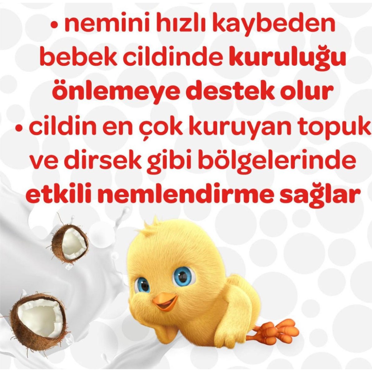 Bebeğin bez bölgesi bakımını sağlar, narin cildinin direncini artırır.pH 5.5 değeri ile bebek cildinin doğal gelişimini destekler.Nitro-mokus bileşikler, formaldehit, nitrozaminler, diyakson içermez. Renklendirici içermez.Koruyucu içermez.Paraben içermez....
