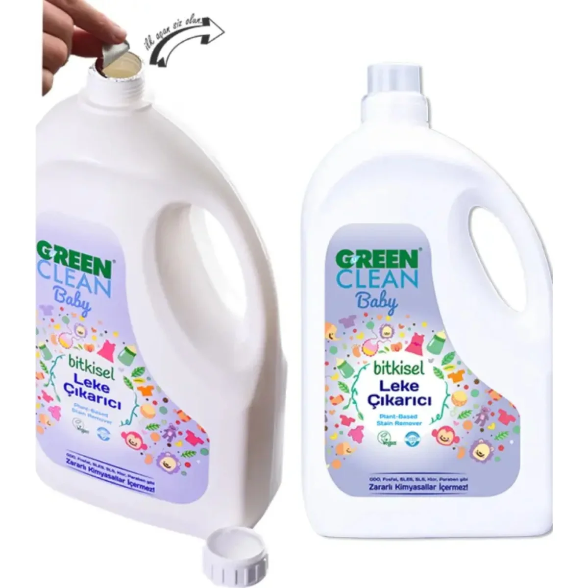 Elde ve Makinede. U Green Clean Baby Bitkisel Leke Çıkarıcı, bebek ve hassas ciltli kişilerin çamaşırlarında kullanıma uygundur. Leke ve kirlerin temizliği için özel olarak formüle edilmiştir. İçerdiği etkin temizleme maddeleri sayesinde gıda, bebek maması, vs.Gibi zor lekelerin kolayca temizlenmesini sağlar. Kalıntı bırakmaz ve kolayca durulanır. Klor ve optik parlatıcı içermediğinden çamaşırlarınıza zarar vermez. Çamaşırlarınızı soldurmadan temizler.Renklerin birbirine karışmasını önler. GDO.Vücut ve gıda maddeleri temizliğinde kullanmayınız. Gıda maddelerinden ve çocukların ulaşabileceği yerlerden uzak tutunuz. Yutulması halinde veya göz ile temasında gözü derhal bol su ile yıkayın.Doktora başvurun kabı veya etiketi gösteriniz. Kullanım:....