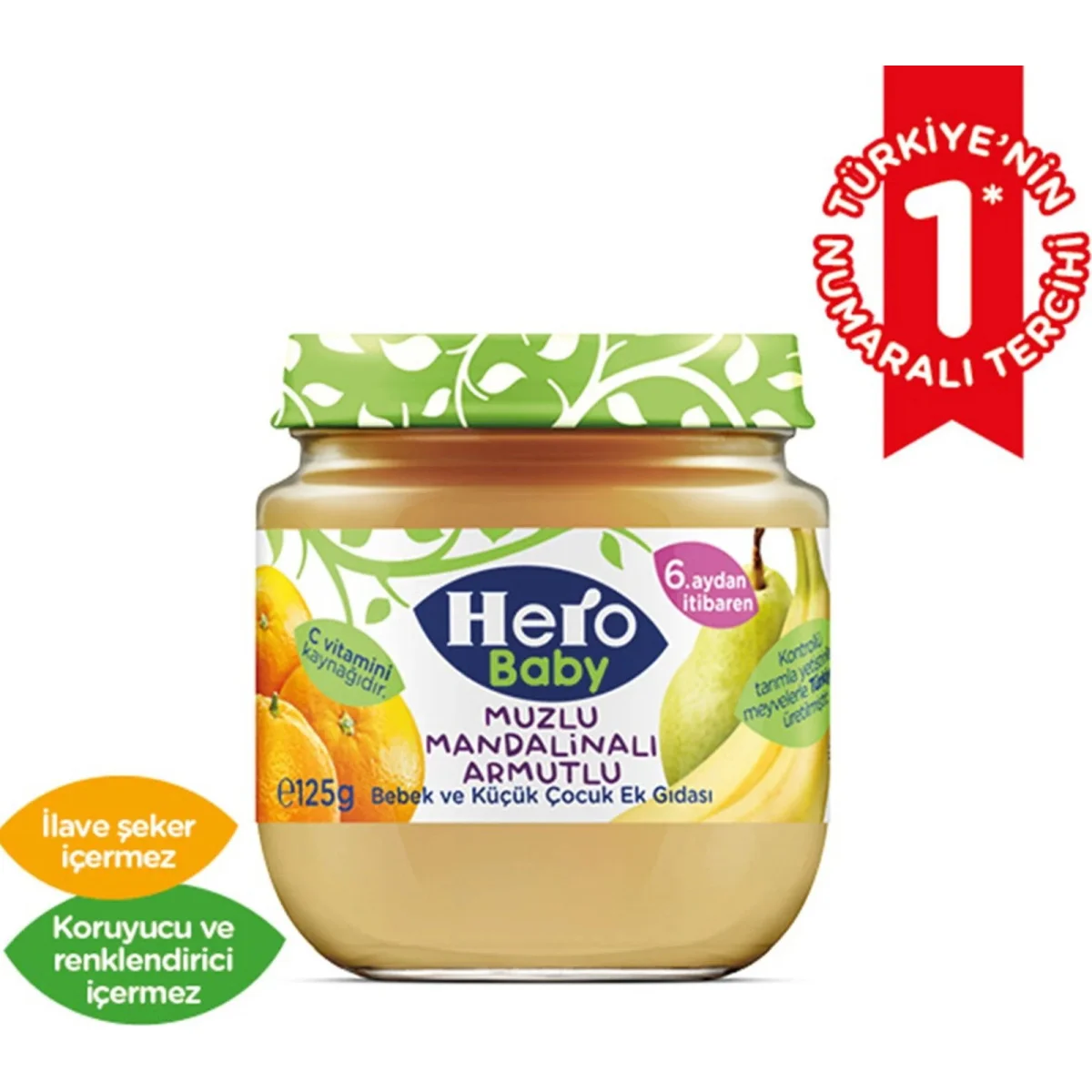 Hero Baby Muzlu Mandalinalı Armutlu Kavanoz Maması, 125 g