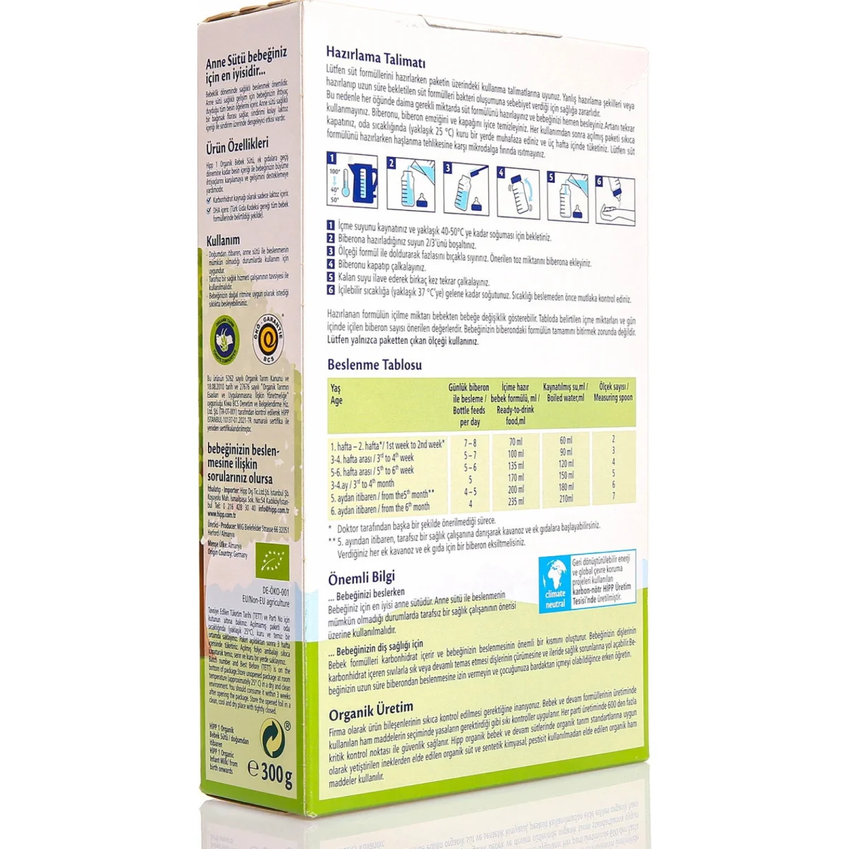 HiPP 1 Organik Bebek Sütü 600 gr, tamamen Organik süt kullanılarak üretilmiştir.Anne sütü gibi tüm bebek formüleri de karbonhidrat içerir ve bebeğinizin beslenmesinin önemli bir kısmını oluşturur.Bebeğinizin dişlerinin karbonhidrat içeren sıvılarla sık veya devamlı temas etmesi dişlerinin çürümesine ve ileride sağlık sorunlarına yol açabilir.Bebeğinizin uzun süre biberondan beslenmesine izin vermeyin ve çocuğunuza bardaktan içmeyi olabildiğince erken öğretin.Anne sütü bebeğiniz için en iyisidir.Bu ürün doğum sonrasında anne sütüyle beslenmenin mümkün olmadığı durumlarda bebeklerin özel beslenmesi için uygundur.Bu ürün yetkili sağlık çalışanının önerisi ile kullanılmalıdır.HiPP 1 ORGANİK, organik sütten gelen protein içeriğine sahiptir.HiPP 1....