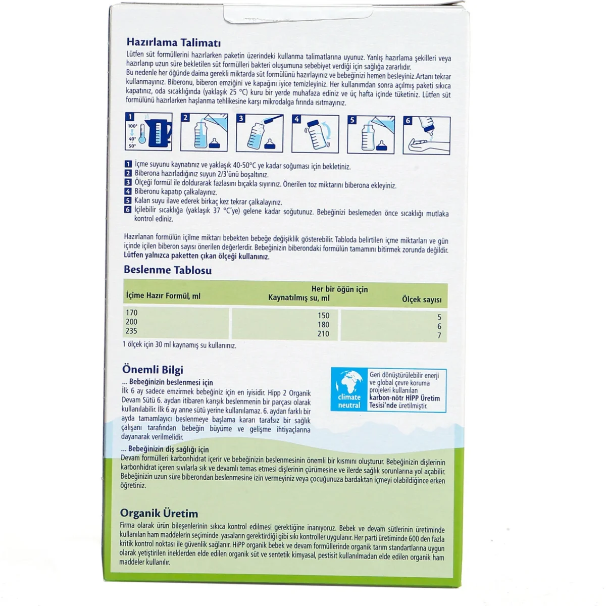 Tamamen Organik süt kullanılarak üretilmiştir. Anne sütü bebeğiniz için en iyi besin kaynağıdır. Bu ürün anne sütünün yetersiz kaldığı veya hiç verilemediği durumlarda doktor kontrolünde verilmelidir. HiPP 2 ORGANİK.Organik sütten gelen protein içeriğine sahiptir. HiPP 2 ORGANİK karbonhidrat olarak laktozun dışında kolay sindirilebilir nişasta içerir. HiPP 2 ORGANİK devam sütü.HiPP 1 veya herhangi bir bebek formülünü takiben 6. Ayın sonundan itibaren kullanılabilir. İlave şeker içermez. Gluten içermez.Saklama koşulları ve son tüketim tarihi, ürün güvenliği ve kalite sürekliliği açısından önceliklidir.Açıldıktan sonra kullanım süresi ve muhafaza önerileri ürünün tazeliğini korumaya yardımcı olur.Dengeli beslenme planında benzer ürün gruplarıyla....