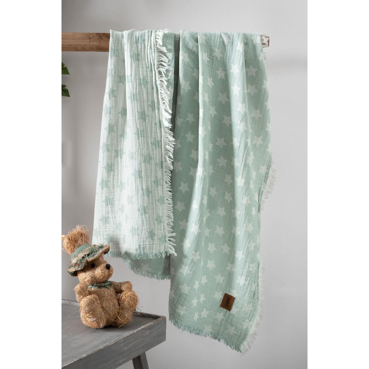 Kanz Bebek Müslin Jakarlı Örtü, 2 Kat, Stars, Yeşil