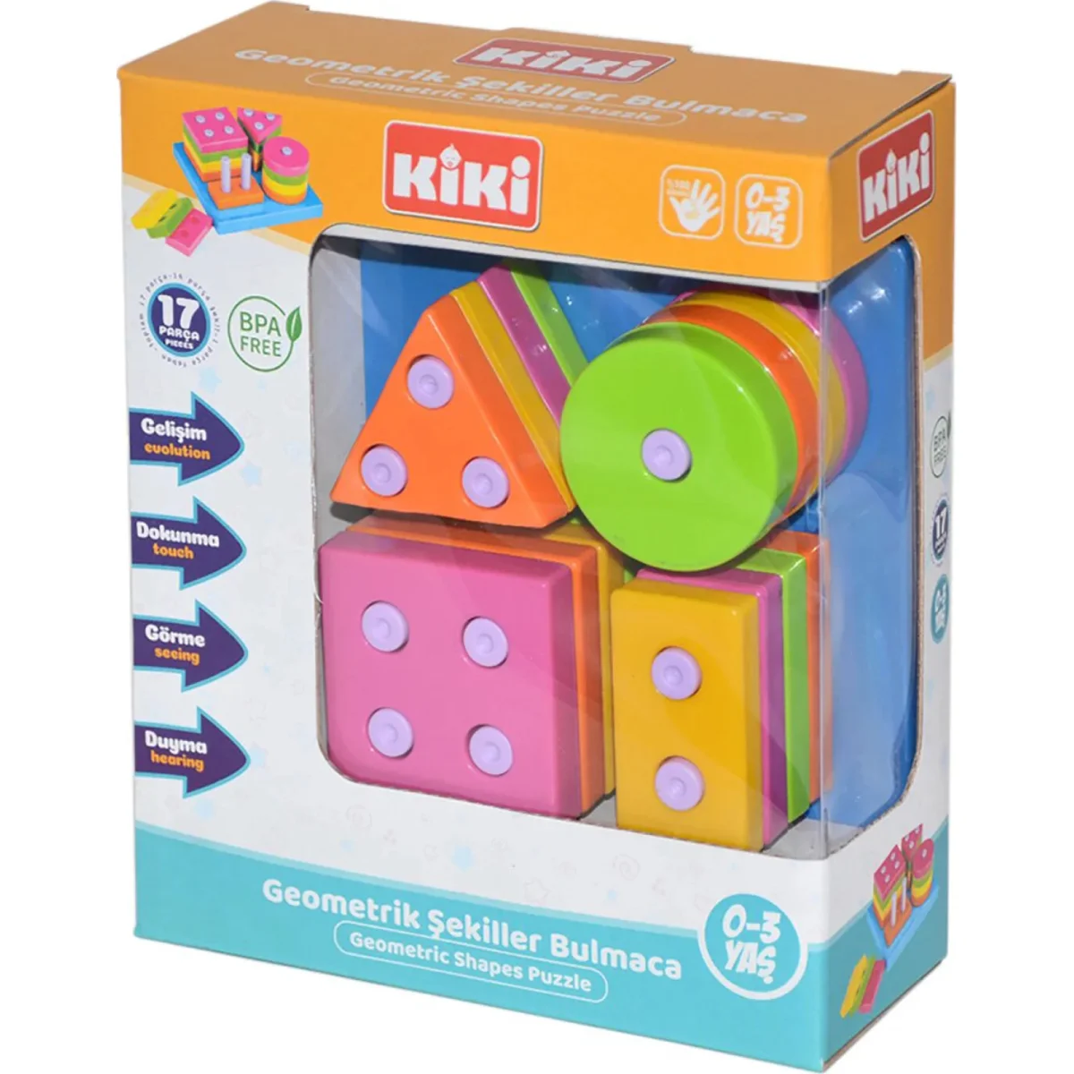 Kiki Geometrik Şekiller Bulmaca, dört farklı geometrik şekil bir puzzle tahtası üzerinde yerleşime hazırlanmıştır.Her bir şekil farklı sayıda deliğe sahiptir.Yani sadece tek bir alana yerleşebilir.Çocuğunuz hangi şeklin hangi alana yerleşmesi gerektiğini düşünerek muhakeme yeteneğini geliştirebilir.Şekilleri eşleştirerek karşılaştırma yeteneğini çalıştırabilir.Her biri farklı renkteki geometrik şekiller ile ona renkleri tanıtabilirsiniz.Onunla oynamaya, ona yeni şeyler öğretmeye ve onunla eğlenmeye bayılacaksınız.Kİ.Kİ bebek oyuncakları Avrupa Güvenlik testlerinden geçmiş, bebeklerimizin fiziksel ve duygusal gelişimine faydalı olması için tasarlanmıştır.Yaş Aralığı: 0-3 Yaş.Kutu Ölçüsü: 16.5 x 19.5 x 6 5 cm