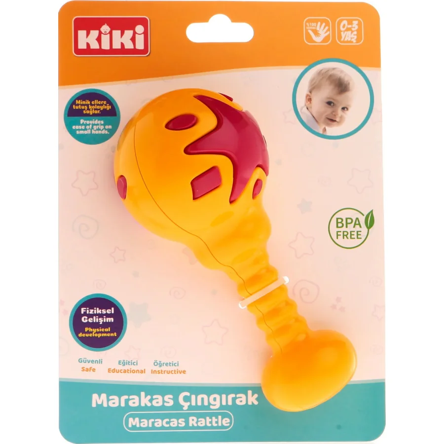 Kiki Oyuncak Marakas Çıngırak Eğitici ve Öğretici Erken Öğrenme Oyuncağı Bebekler marakas çıngırak ile çok eğlenecekler!Kiki marakas küçük ellerin kolayca kavrayıp sallayabileceği boyutta tasarlanmıştır.Miniklerin çıngırağı salladığı zaman içinde bulunan boncuklar sayesinde çıkan sesler dikkatini çekerek algı gelişimlerine katkı sağlar.Bebeğiniz ile birlikte bir şarkı açıp; marakaslarla birlikte eşlik edebilir, kaliteli vakit geçirebilirsiniz.Bebeğinizin duyma, görme ve dokunma gibi duyularını harekete geçirir, ince motor becerilerini ve hayal gücünü geliştirir.Farklı müzik aletlerini tanımasını sağlar.Ürünün; sarı, fuşya, yeşil ve turkuaz olmak üzere 4 farklı renk seçeneği bulunmaktadır.Ürün Ölçüsü: 14 cm Kutu Ölçüsü: 14x7x19 cm Ağırlık: 0,066....