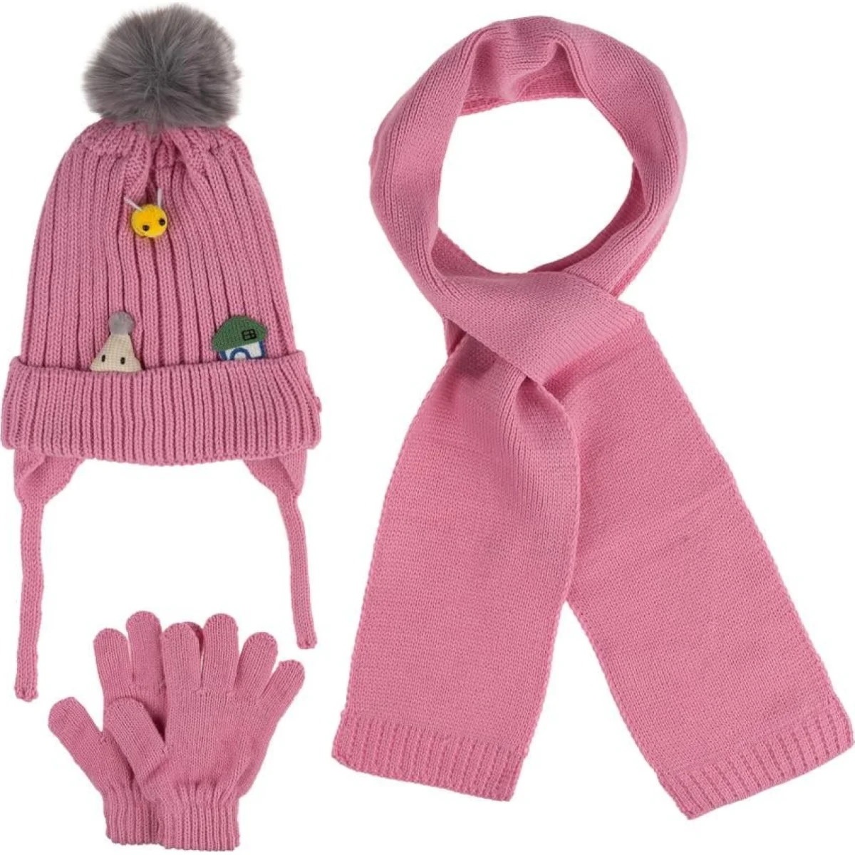 Kitti Bebe Kız Atkı Bere Eldiven Takım (1-4 Yaş), Pembe