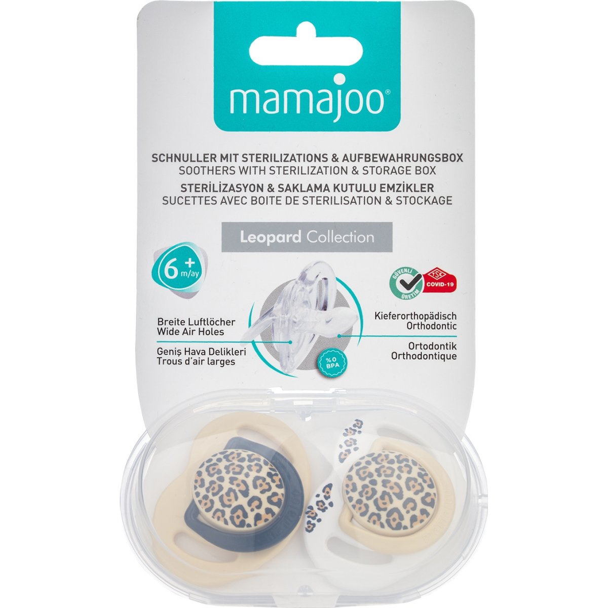 Mamajoo Sterilizasyon & Saklama Kutulu 2'li Ortodondik Emzik, 6 Ay+, Bej, Leopar