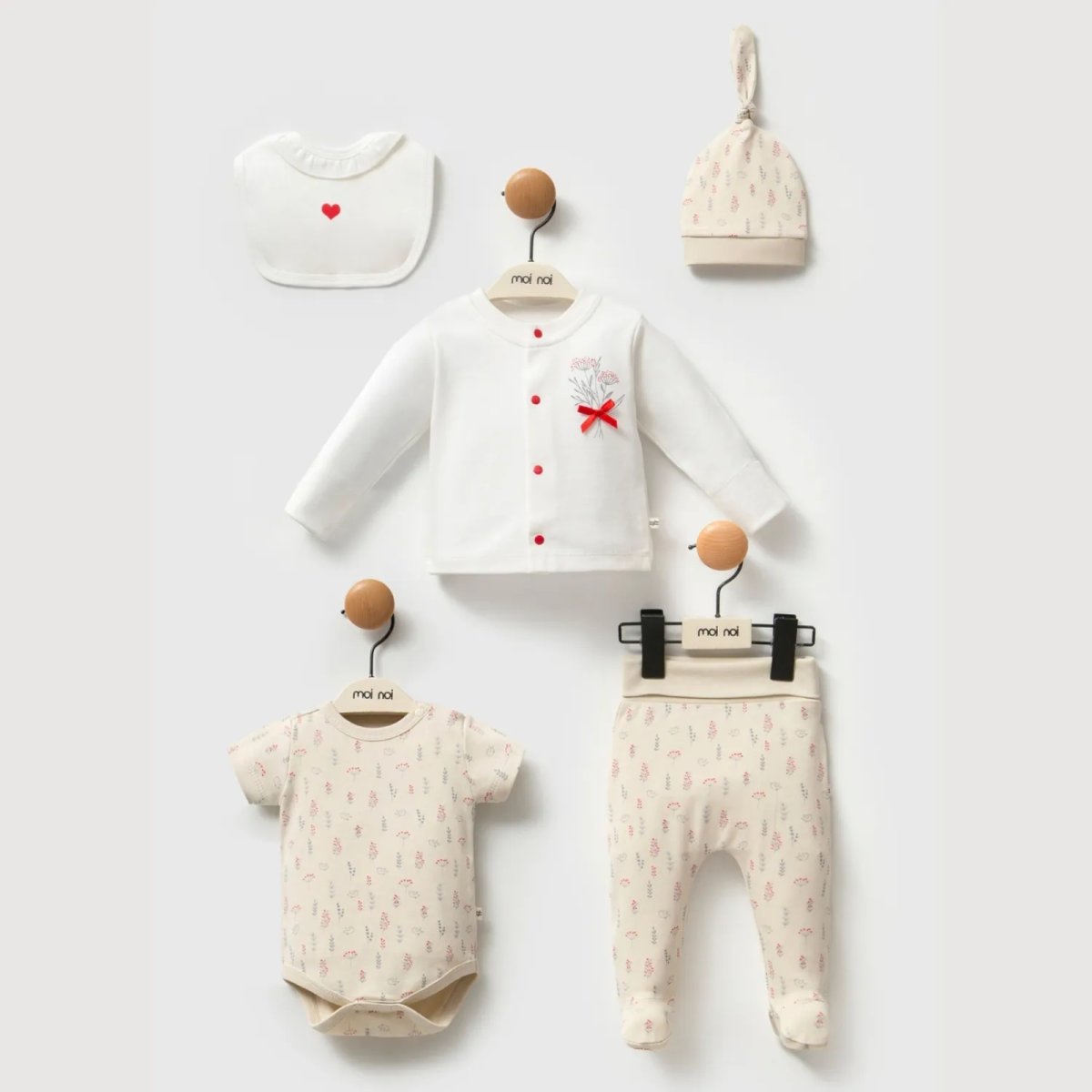 Moi Noi Hastane Çıkışı 5Li Kokina Moi Noi 5li Bebek Hastane Çıkışı pamuklu kumaştan üretildiği için sık yıkamaya uygundur.Ergonomik yapısıyla bebeğinizi sarar, estetik tasarımıyla şıklığını tamamlar.Bebeğinizin sağlığına uygun kumaş ve malzemelerden üreti...