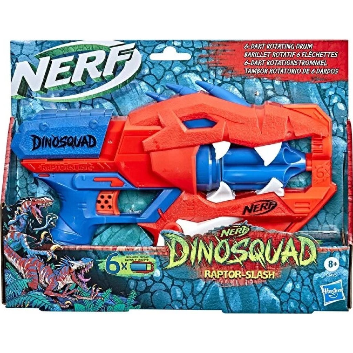 Elit DinoSquad'ın bir üyesi olarak efsanevi dinozorlarla takım kurun!En büyük dinozorların olağanüstü gücünü kullanın ve harika maceralara birlikte atılın!Nerf DinoSquad Raptor-slash, Velociraptor dinozorunun görünümünü andıran muhteşem bir dinozor tasarımına sahip.Dart tabancasının 6 dartlık döner silindir şarjörüyle 6 dartı sırayla atın.Raptor-Slash, dartlar raptorun ezici çenelerinden çıkacak şekilde tasarlanmıştır.Tek seferde 1 dart atın veya 6 dartın hepsini hızlıca seri fırlatın.Silindir ş...