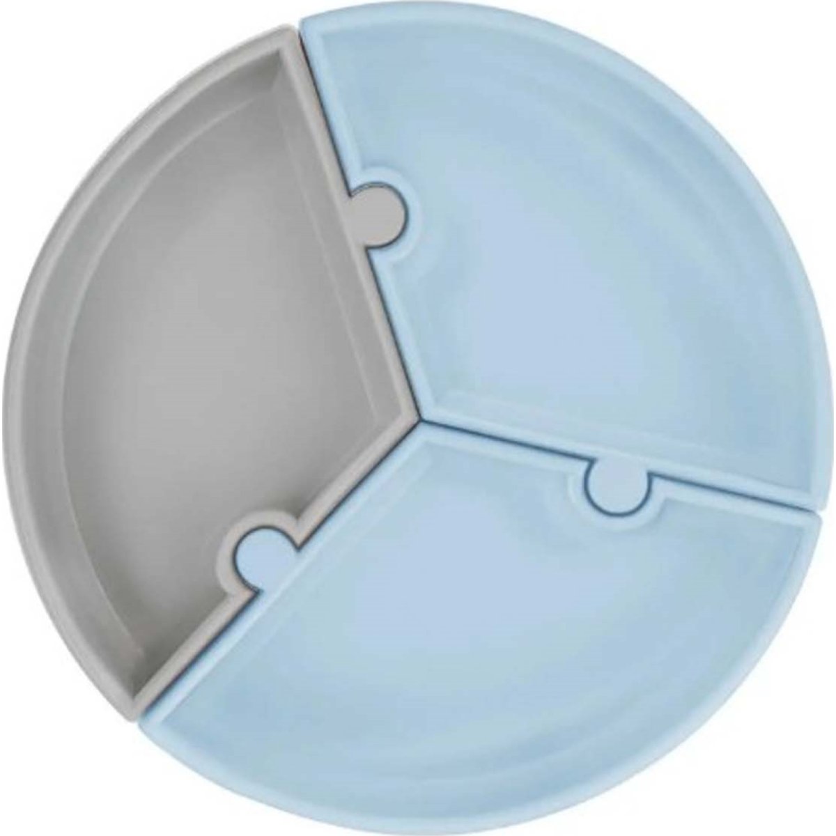 OiOi Puzzle Vakum Tabanlı Silikon Tabak Mineral Blue / Powder Grey