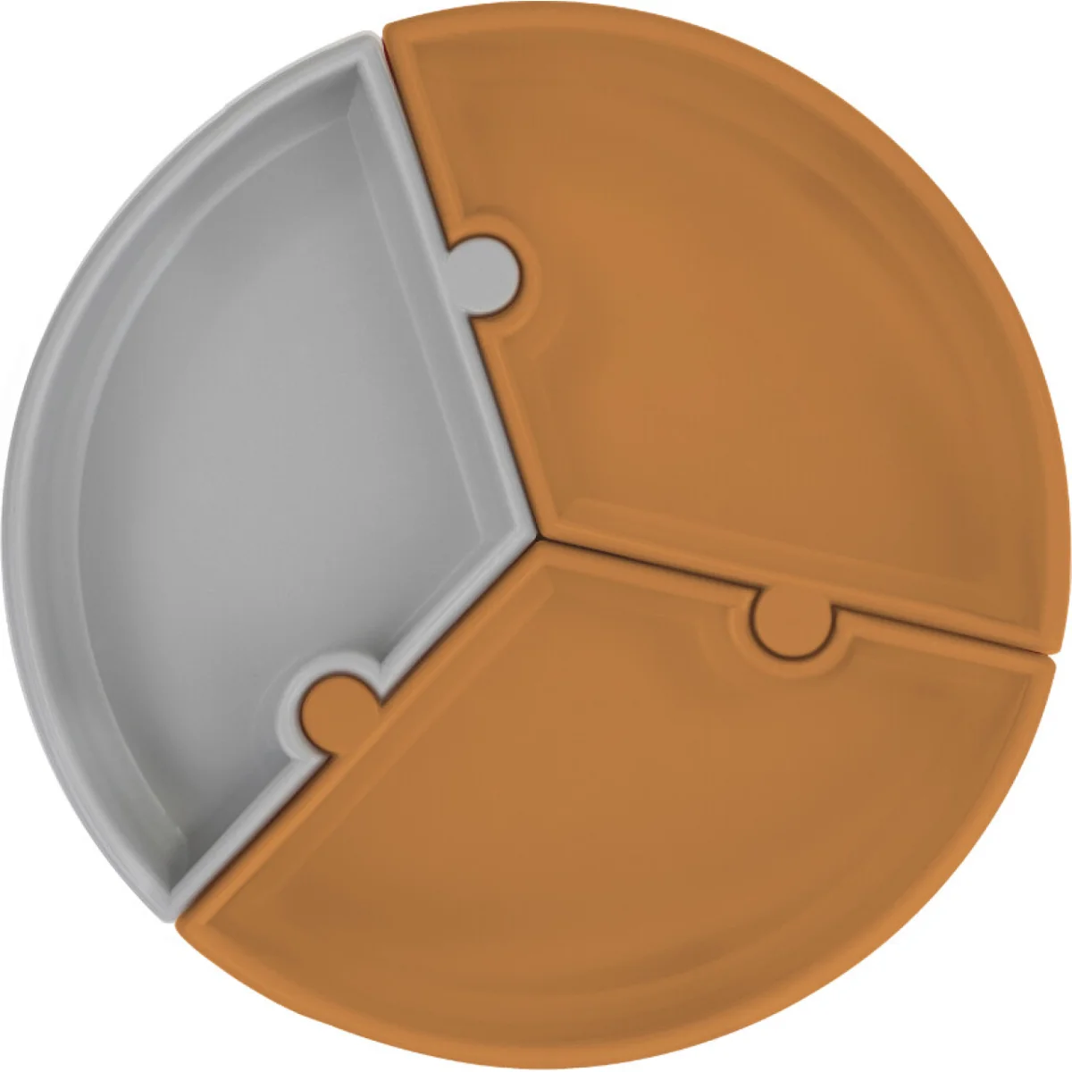 OiOi Puzzle Vakum Tabanlı Silikon Tabak Woody Brown / Powder, Gri