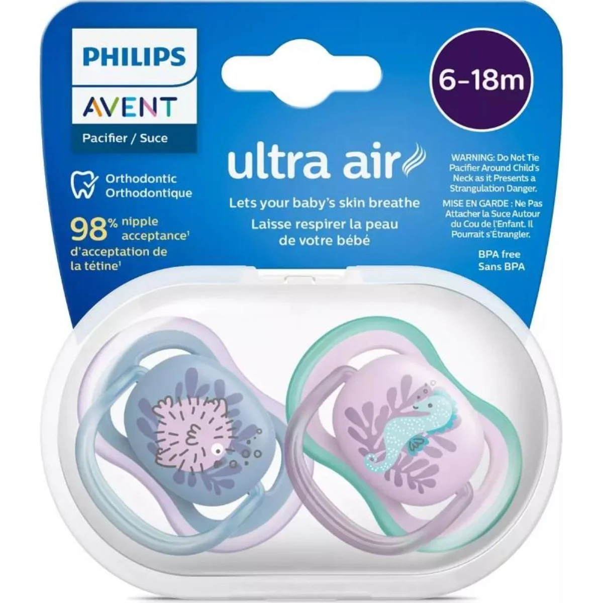 Philips Avent Ultra Air Gece Emziği 18+ İkili, Ekstra geniş hava delikleri, bebeklerin cildinin nefes almasını sağlar.Ortodontiktir ve BPA içermez.4 ekstra geniş hava deliğine sahiptir.Saklama kaplarıyla silikon emzikleri taşımak daha kolaydır.Mikrodalgada kolay sterilize edilebilir.Pakette 2 adet emzik bulunmaktadır.Yaş Aralığı: +18 Ay.