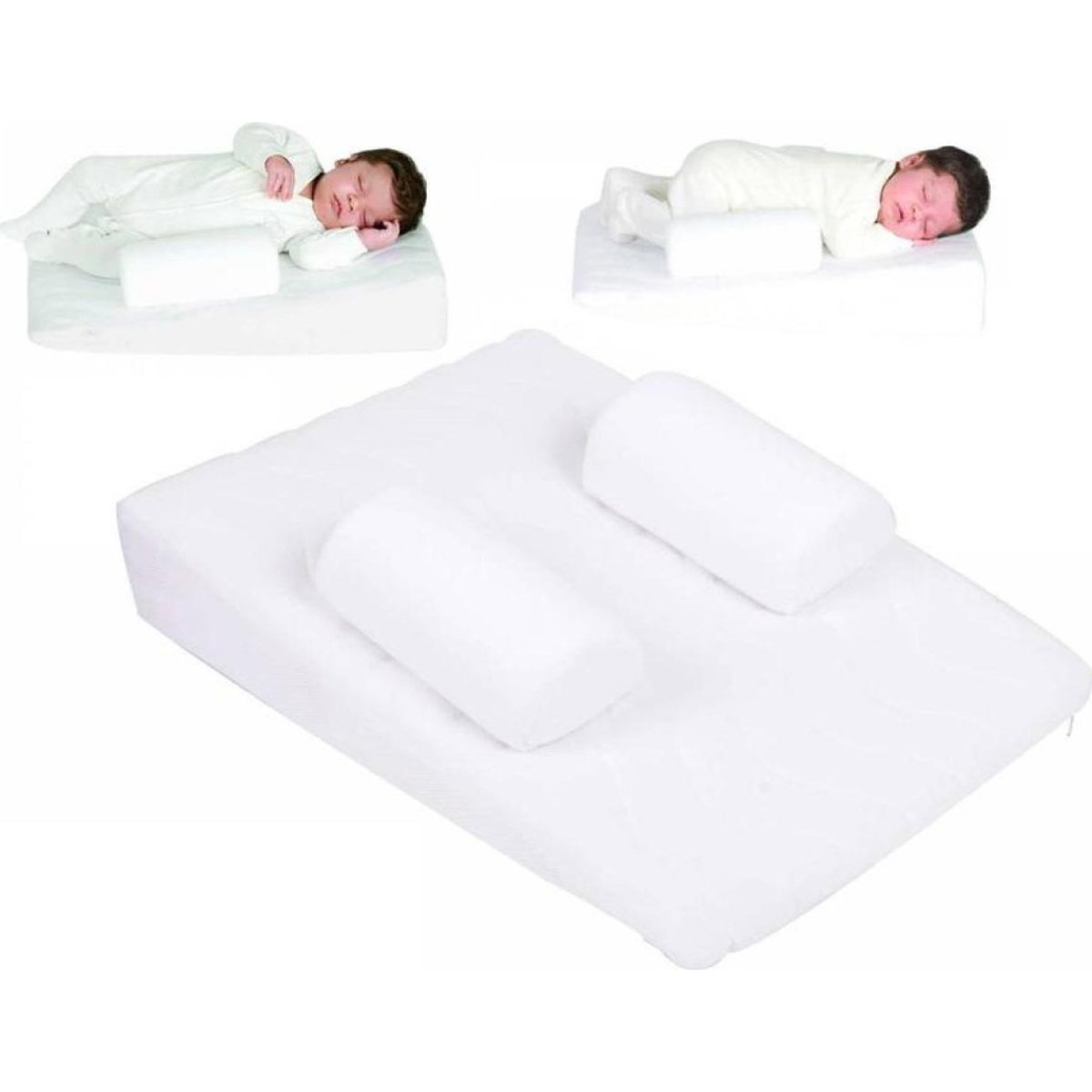 Özellikle yeni doğan bebeklerin yan yatırılmaları ve doğru kafa şekillenmesi için gereken iki ürün bir araya getirilmiştir.Yeni doğan bebeklerde bebek reflüsü olduğu için yeni doğan b ebekleri yan yatırmak tavsiye edilir.Bu nedenle yan yatış yastıkları kullanılır.Ayrıca yeni doğan bebeklerde yanlış yastık kullanımı sonucu kafada şekil bozuklukları görülebilir.Bu nedenle kafa şekillendiri yastık kullanılır.Bebeğin büyüklüğüne göre cırt bantlar ile ayarlanan yastık ile bebek daha rahat uyuyacaktır...