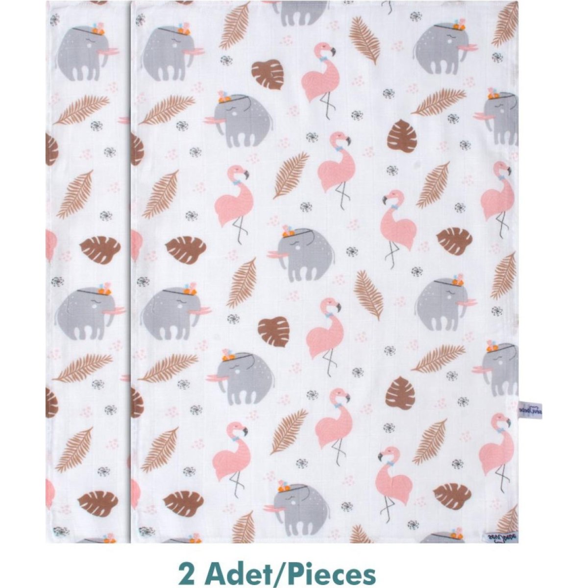 Sevi Bebe Desenli Müslin Çok Amaçlı Bez, Flamingo, 2 Adet