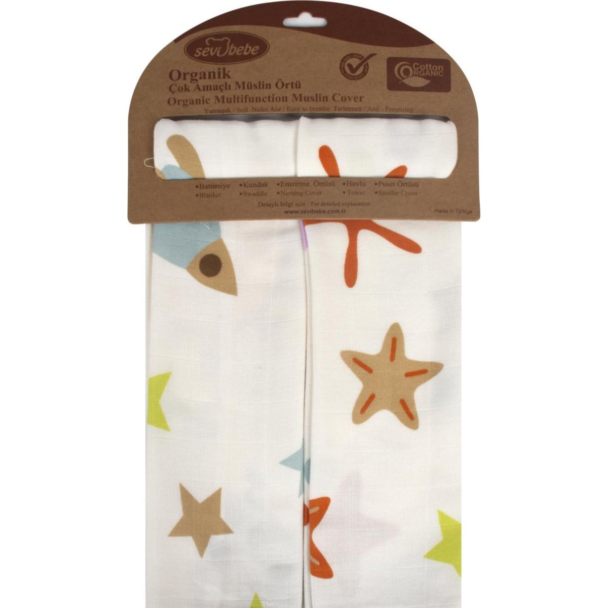 Sevi Bebe Organik Müslin Çok Amaçlı 2'li Örtü, 70x55, Uzay