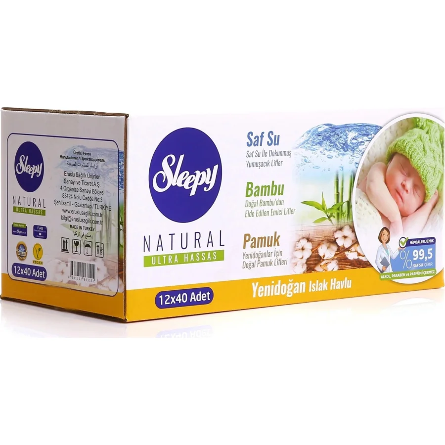 Sleepy Natural Yenidoğan Islak Havlu Mendil, 40 Yaprak, 12'li