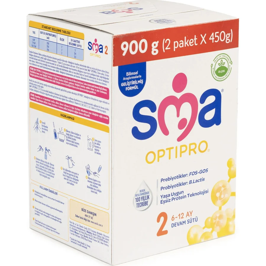 SMA OPTIPRO 2 900 gr (450gx2) 6-12 Ay Devam Sütü Yaşa Uygun Eşsiz Protein Teknolojisi Probiyotikler Nestlé'nin anne sütü üzerine yaptığı araştırmalara dayanarak geliştirilmiş protein teknolojisi OPTIPRO®, çocuğunuzun ihtiyaçlarına uygun miktarda ve kalitede protein içeriği sağlar.İçindekiler: Demineralize peyniraltı suyu (süt ürünü), yağsız süt, bitkisel yağlar [yüksek oleik asitli ayçiçek, düşük erusik asitli kolza, ayçiçek, antioksidan (alfa-tokoferol, L-askorbilpalmitat)], laktoz (süt ürünü) sitrik asidin kalsiyum tuzları, potasyum sitrat, balık yağı, magnezyum klorür, potasyum hidroksit, emülgatör (soya lesitini), potasyum klorür, kolin bitartarat, asitliği düzenleyici (sitrik asit), L-fenilalanin, ortofosforik asidin sodyum tuzları, sodyum....
