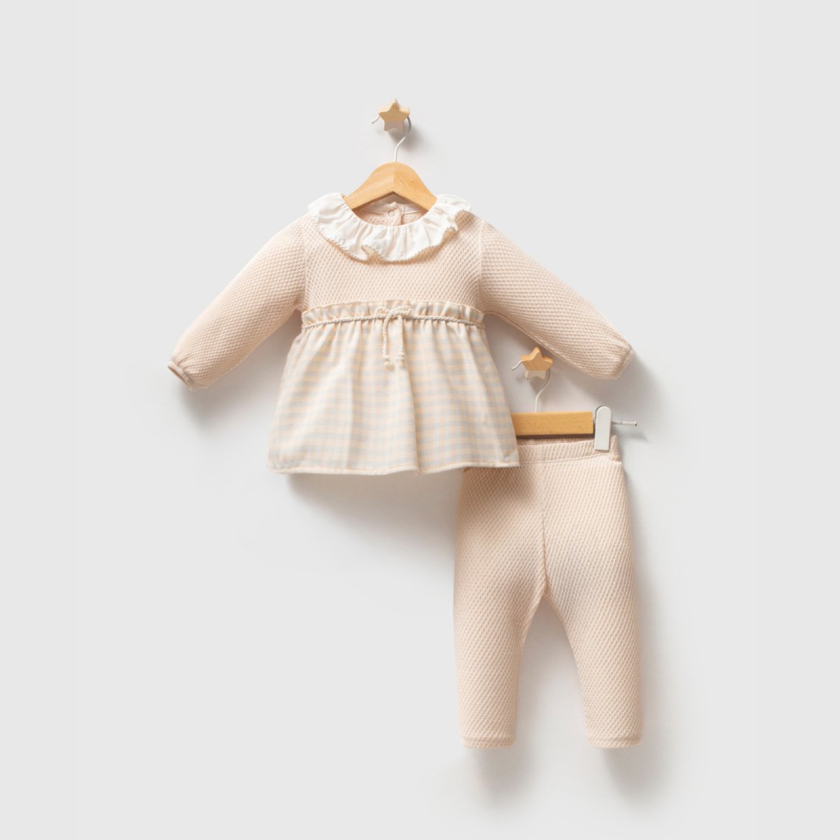 Tongs Baby Daisy Dream 2'Li Takım 5466 Özellikleri;Üst Parça: Bebe yaka tasarımı, örgü dokulu üst bölüm ve fiyonk detayı ile öne çıkar. Ahşap düğme süslemeleri, zarafeti tamamlar.Alt Parça: Yumuşak çizgili dokusu, esnek bel yapısı ve büzgü detayları bebek...