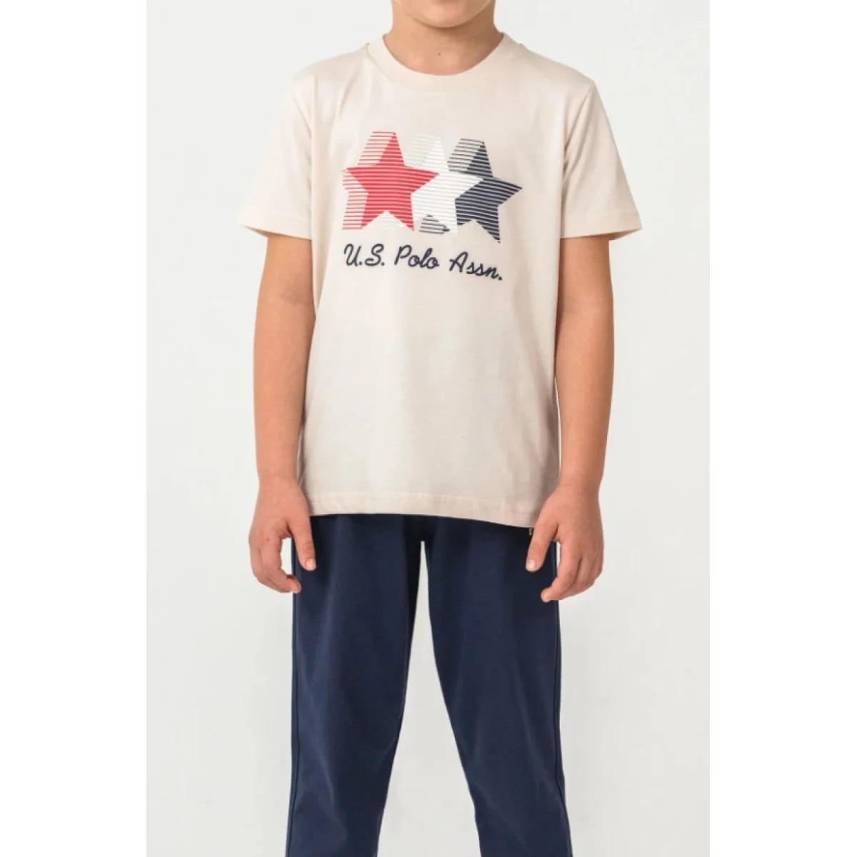 U.S. Polo Kısa Kol Pijama Takım US2441-4 Bej