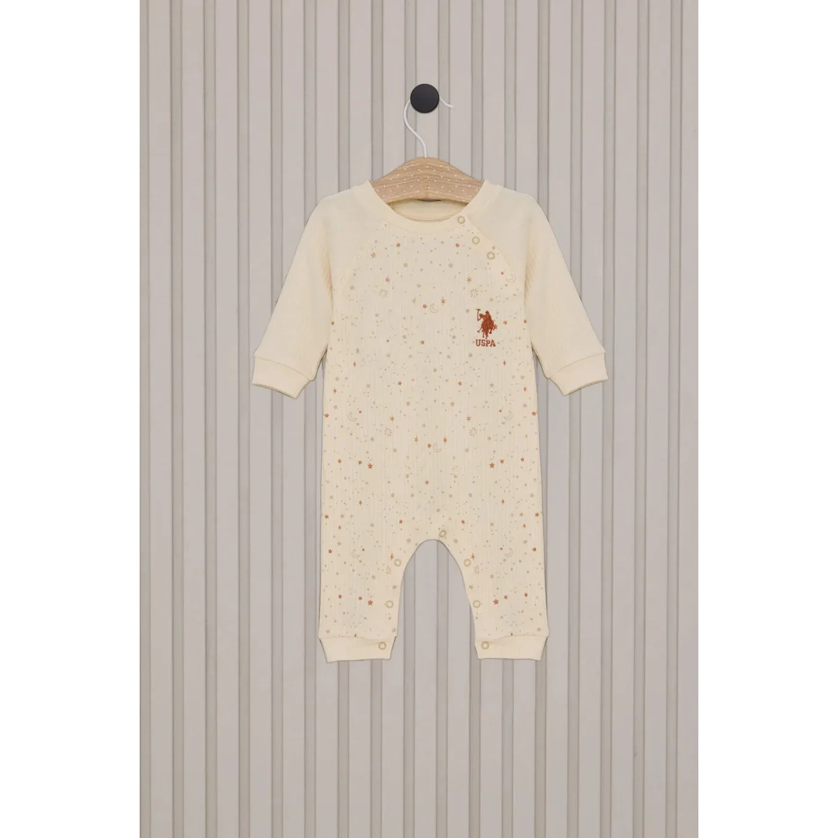U.S.Polo Kız Bebek Uzun Kol Patiksiz Tulum, Krem